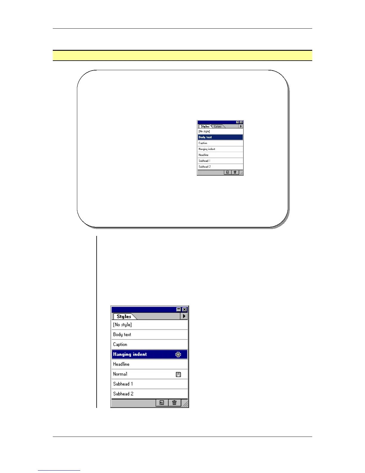 • The Styles pallet allows you to view, apply, and edit styles. You can