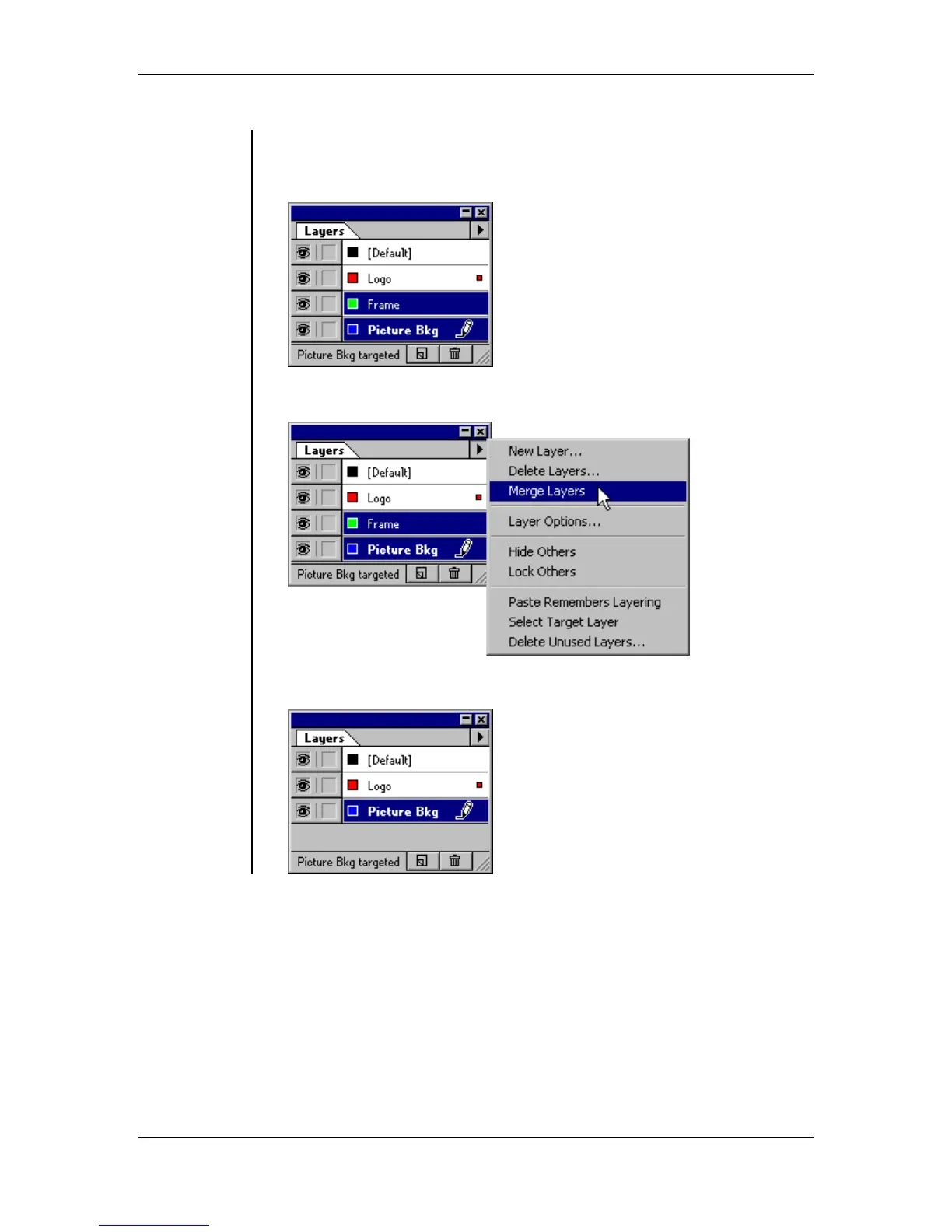 • From the layers palette menu, select the Merge Layers command: