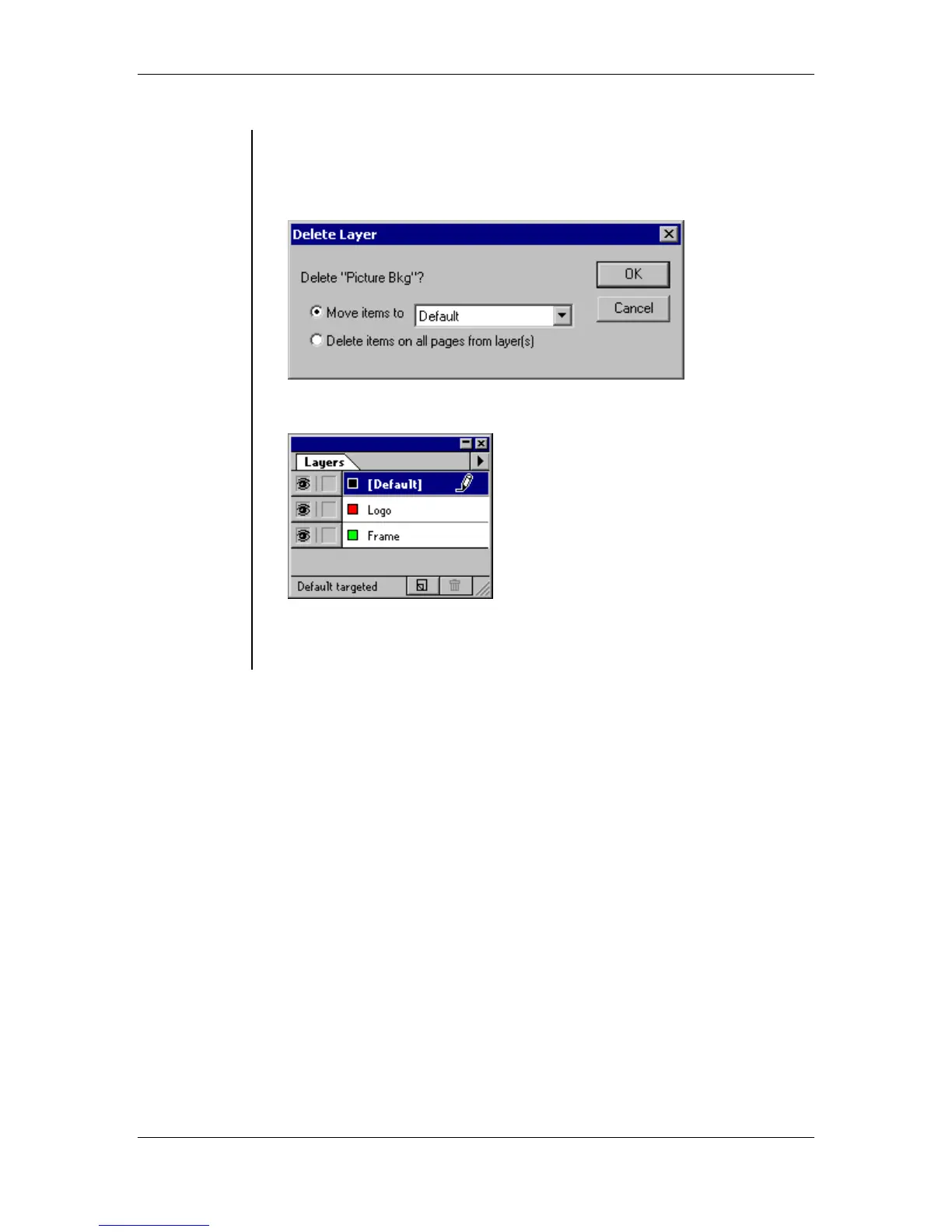 • In the Delete Layer dialog box, select the Move Items to, and choose