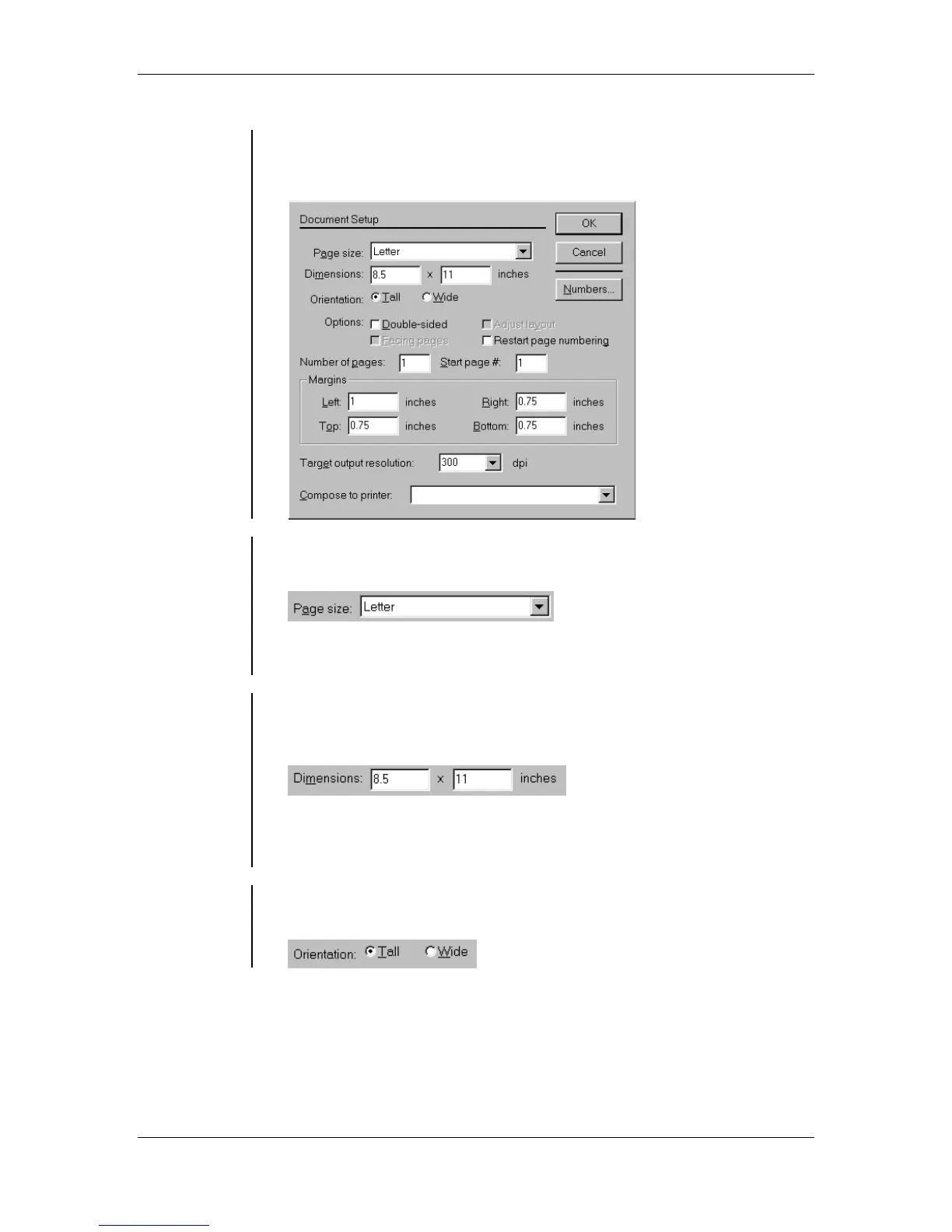 The Document Setup dialog box allows you to define various