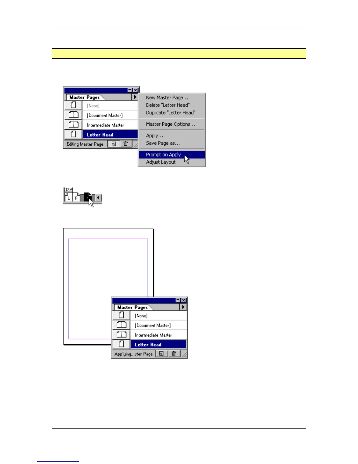 • Click the Letter Head master from the Master Pages palette to apply the master to Page 1:
