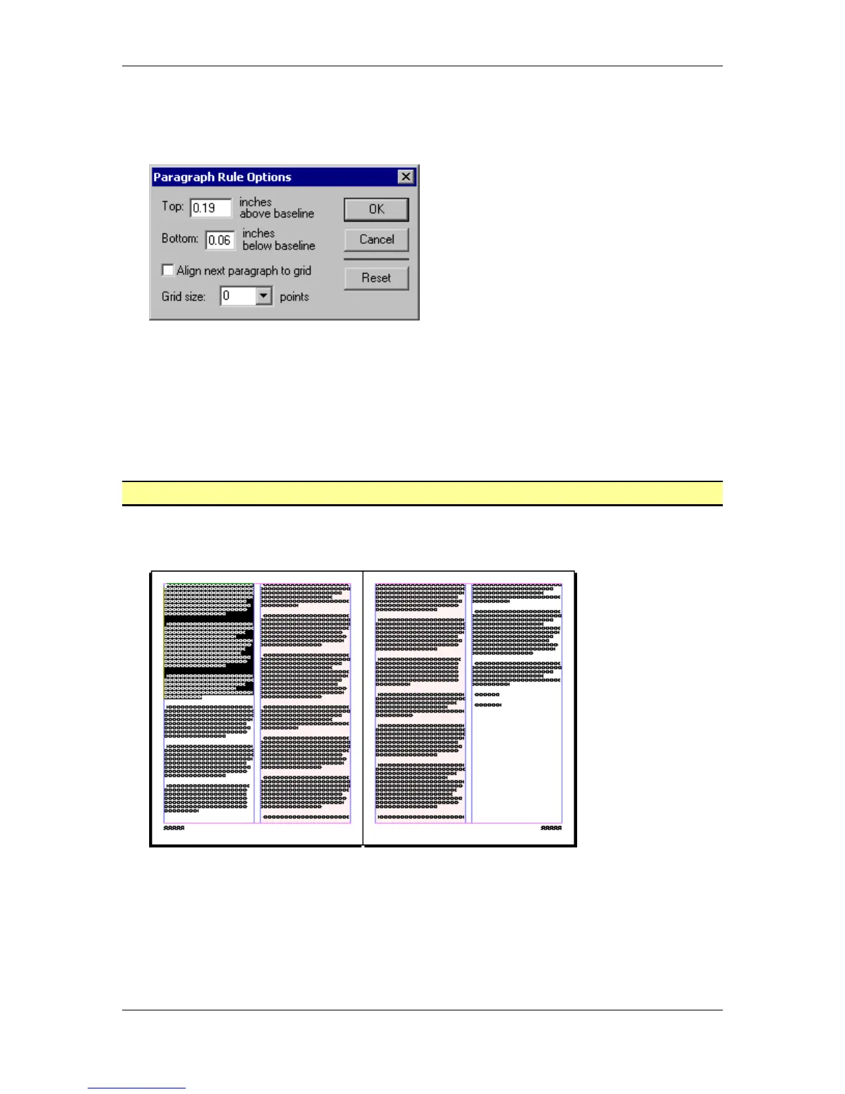 • Enter the following settings into the Paragraph Rule Options dialog box: