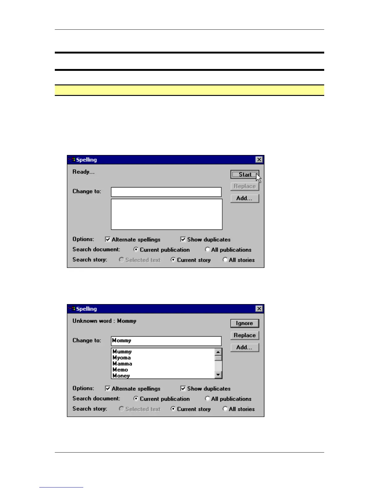 • Click the Start button in the Spelling dialog: