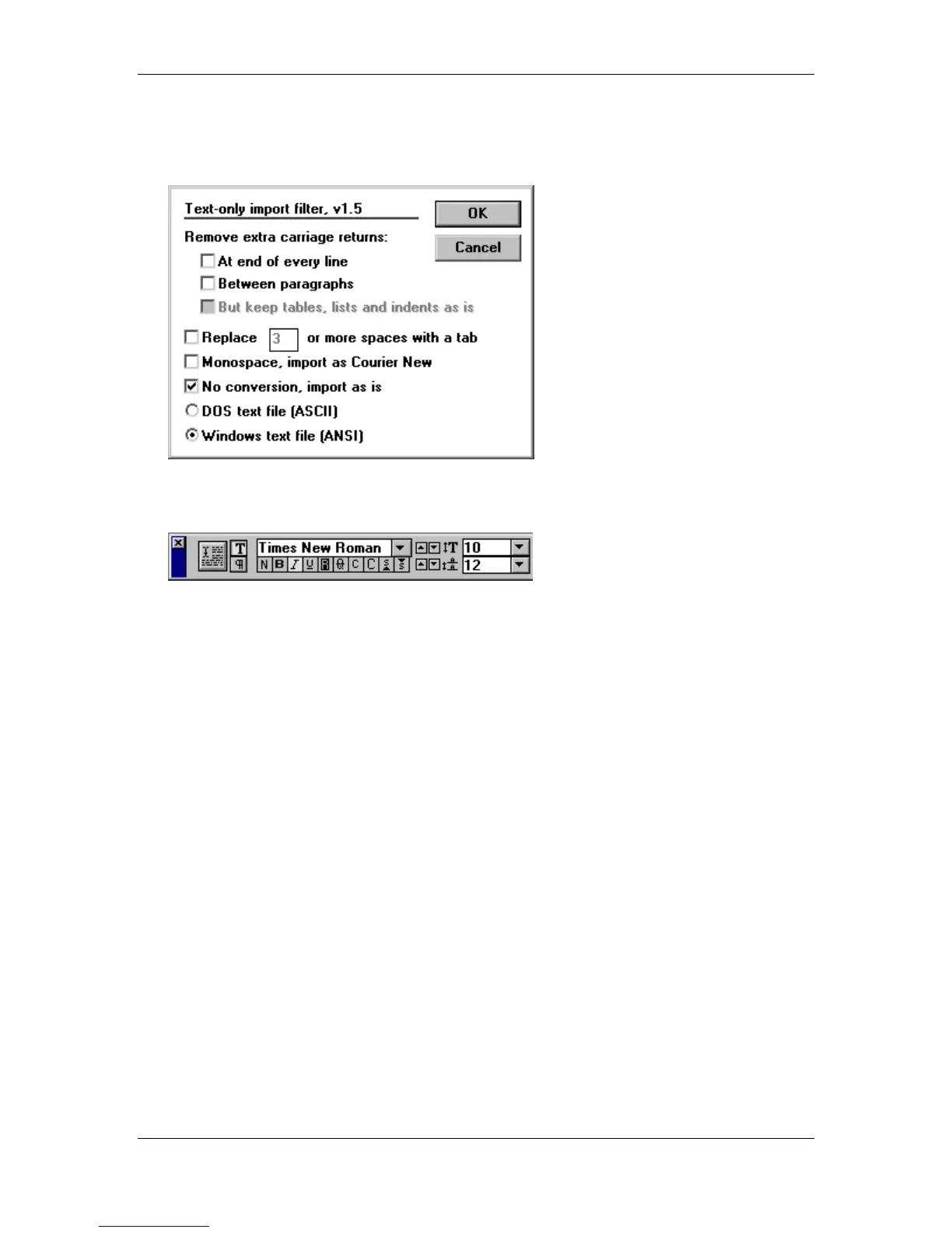 • Enter the following settings into the Text-only import filter and OK: