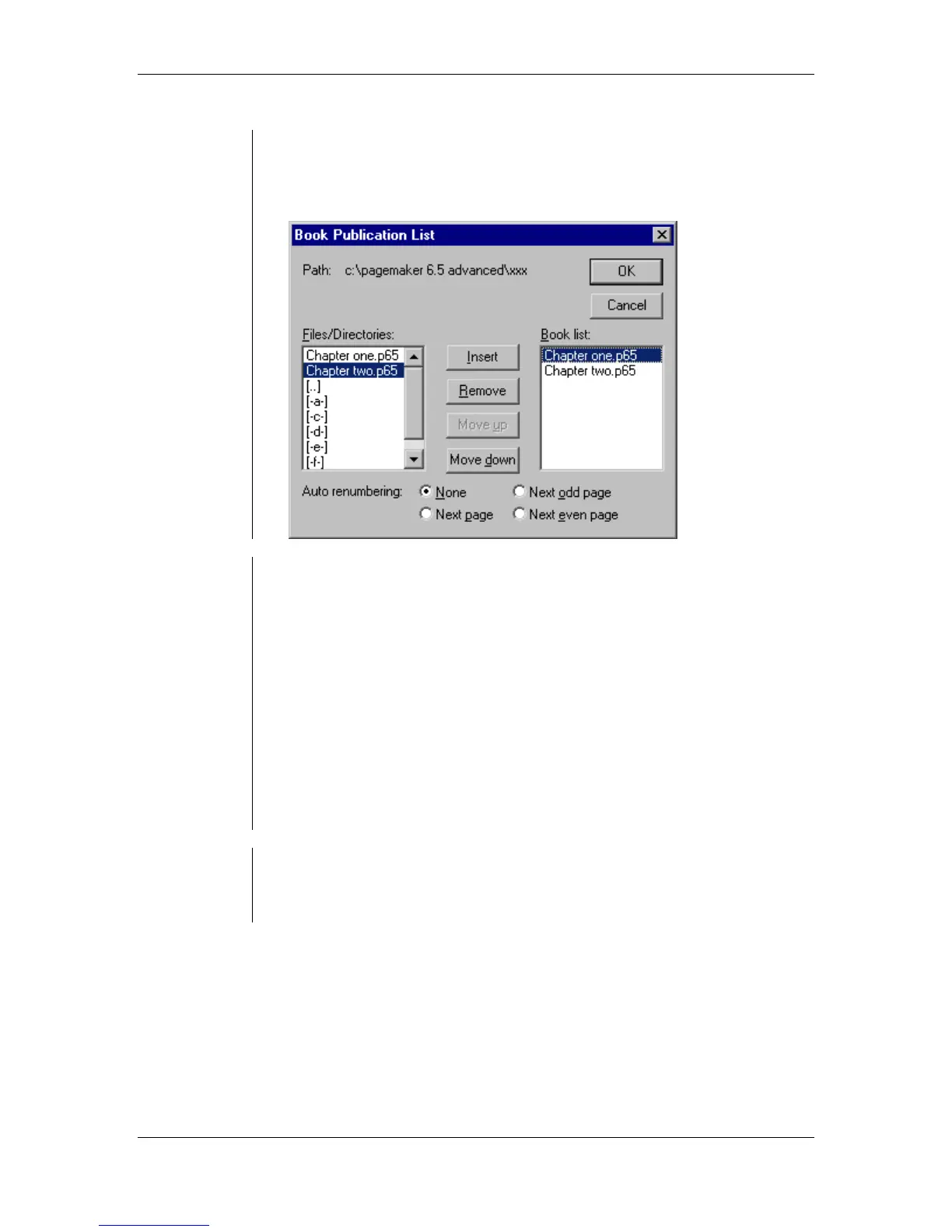 Publication List dialog box: