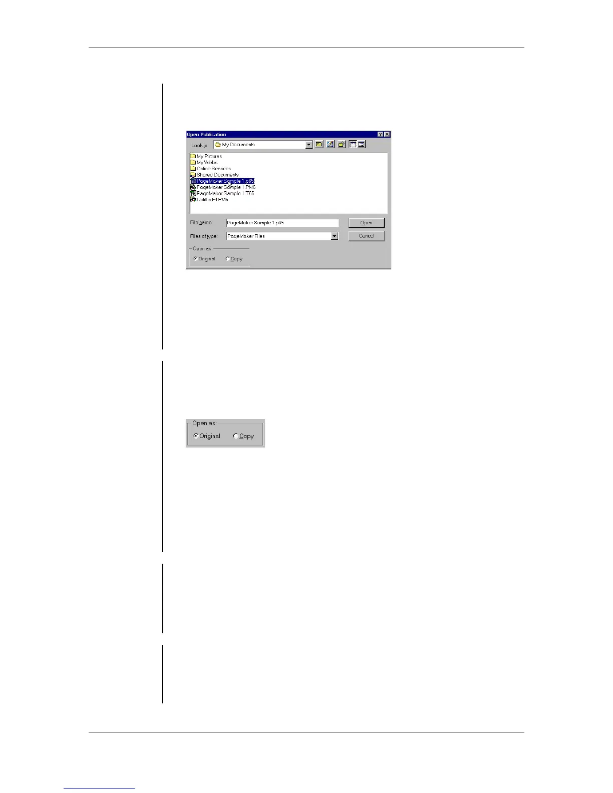 PageMaker automatically selects Copy. To open the original of a
