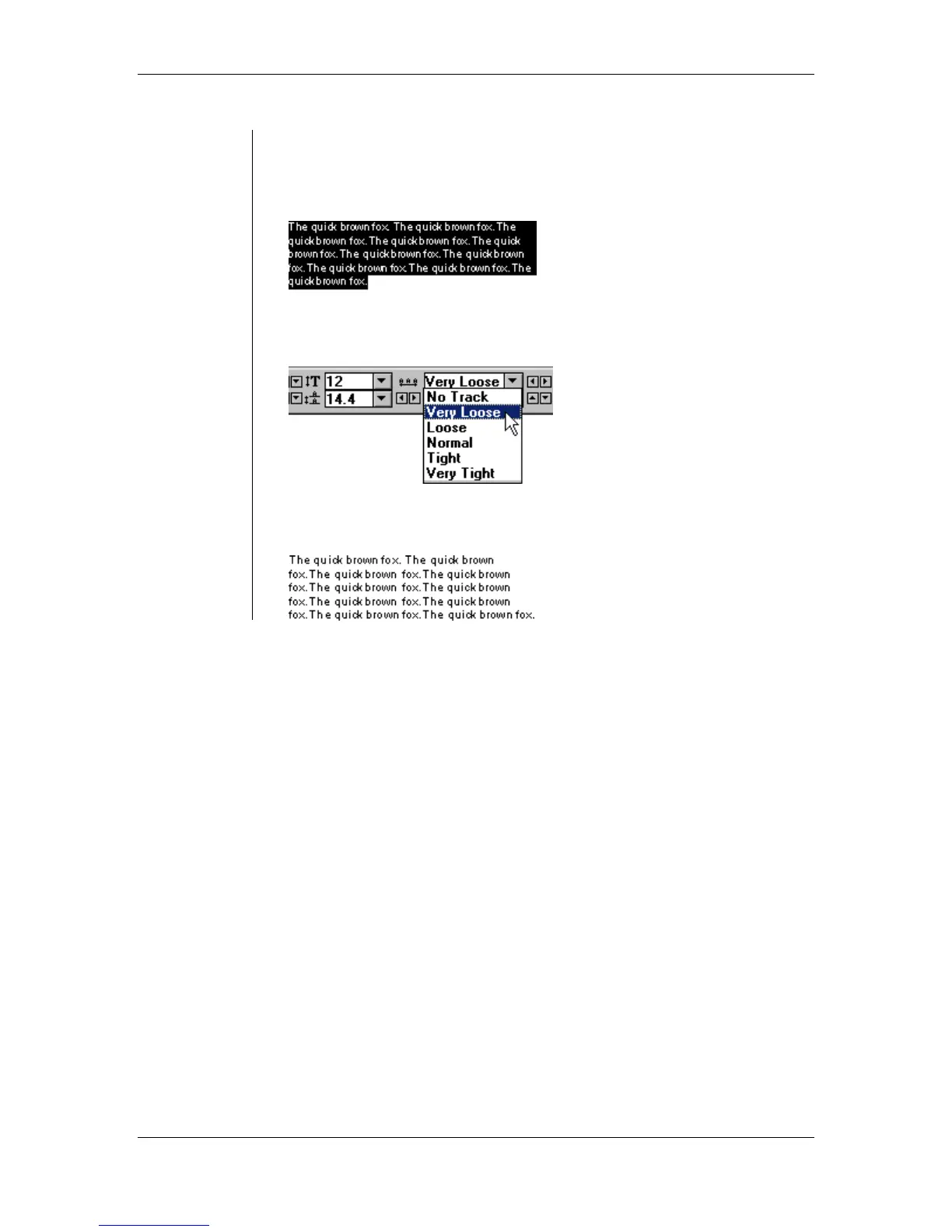 • Tracking adjusts the density of the type on the page.