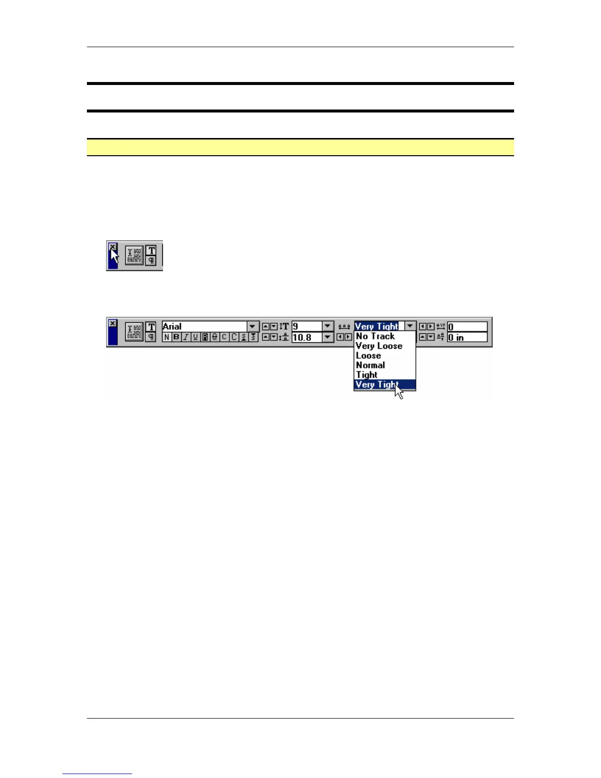 • From the Control palette, select the Very Tight option from the Tracking drop down list:
