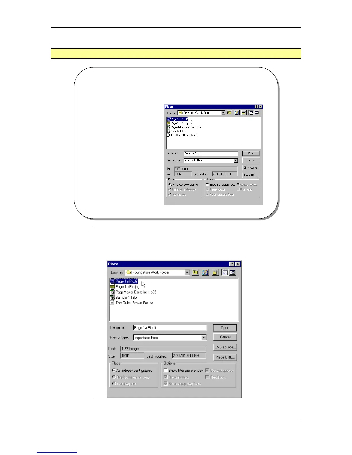 • The Place dialog box allows you to Import graphics of various file