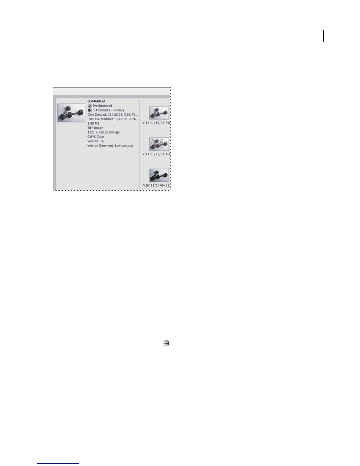After opening a file from a Version Cue Workspace, you can quickly access the previous version thumbnails, version