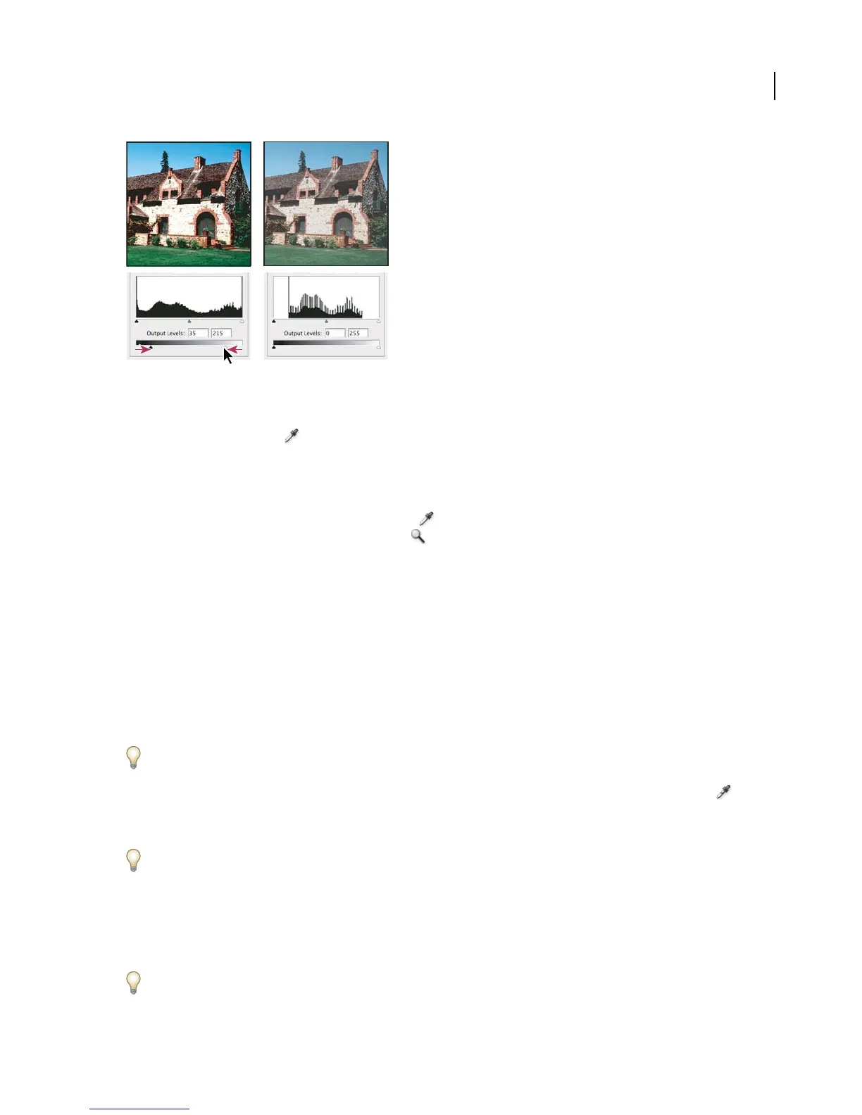 preserved (not clipped to pure black or white). (See “Viewing the color values of pixels” on page 279.)
