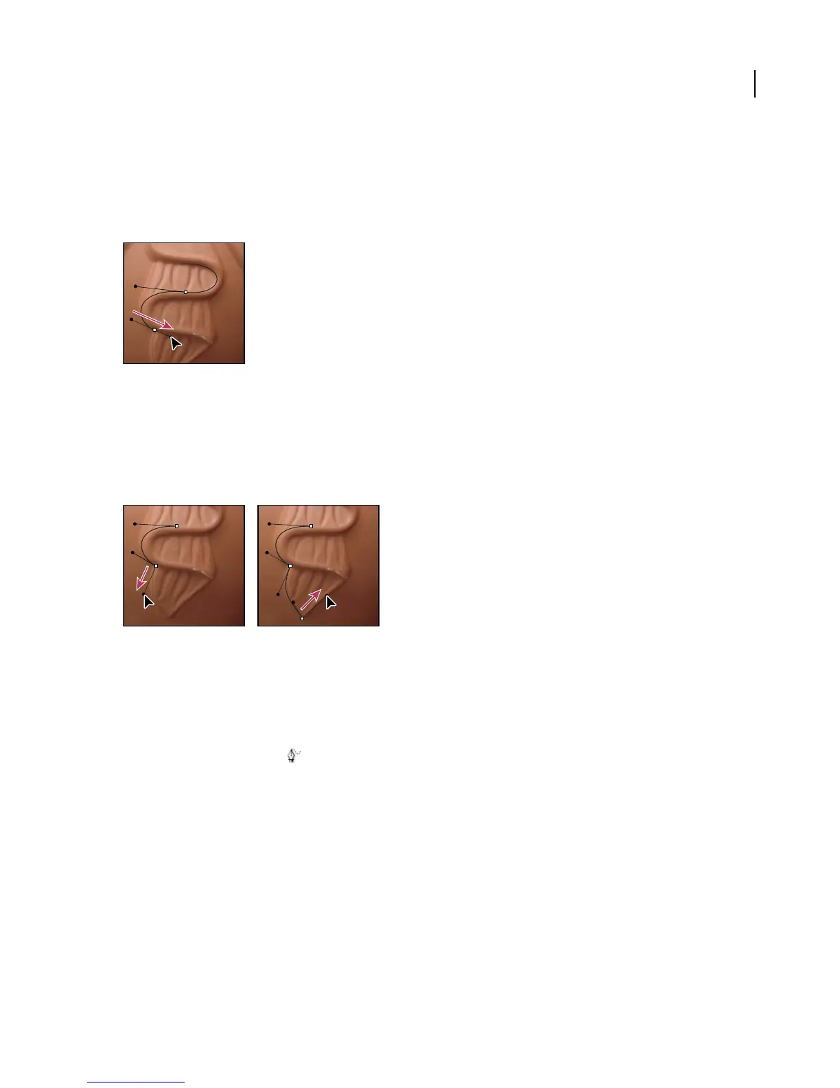 • To change the direction of the curve sharply, release the mouse button, and then Alt-drag (Windows) or Option-