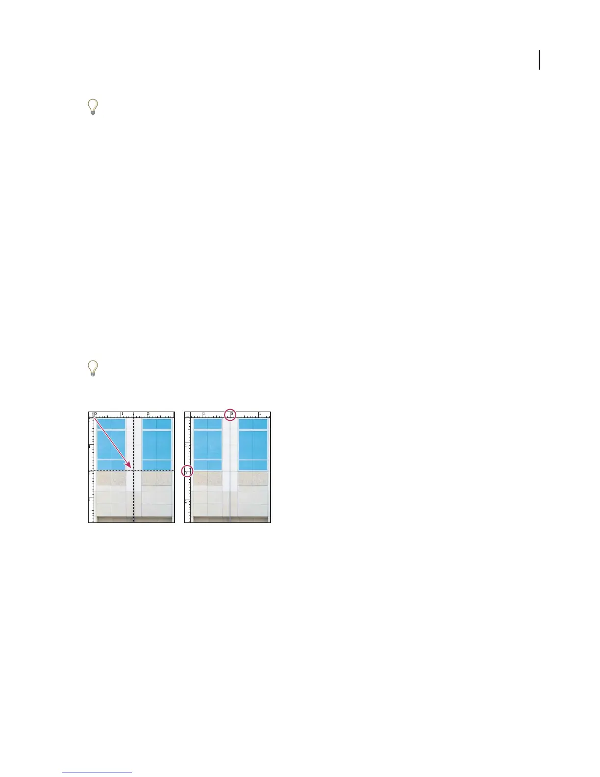 (0, 0) mark on the top and left rulers) lets you measure from a specific point on the image. The ruler origin also deter-