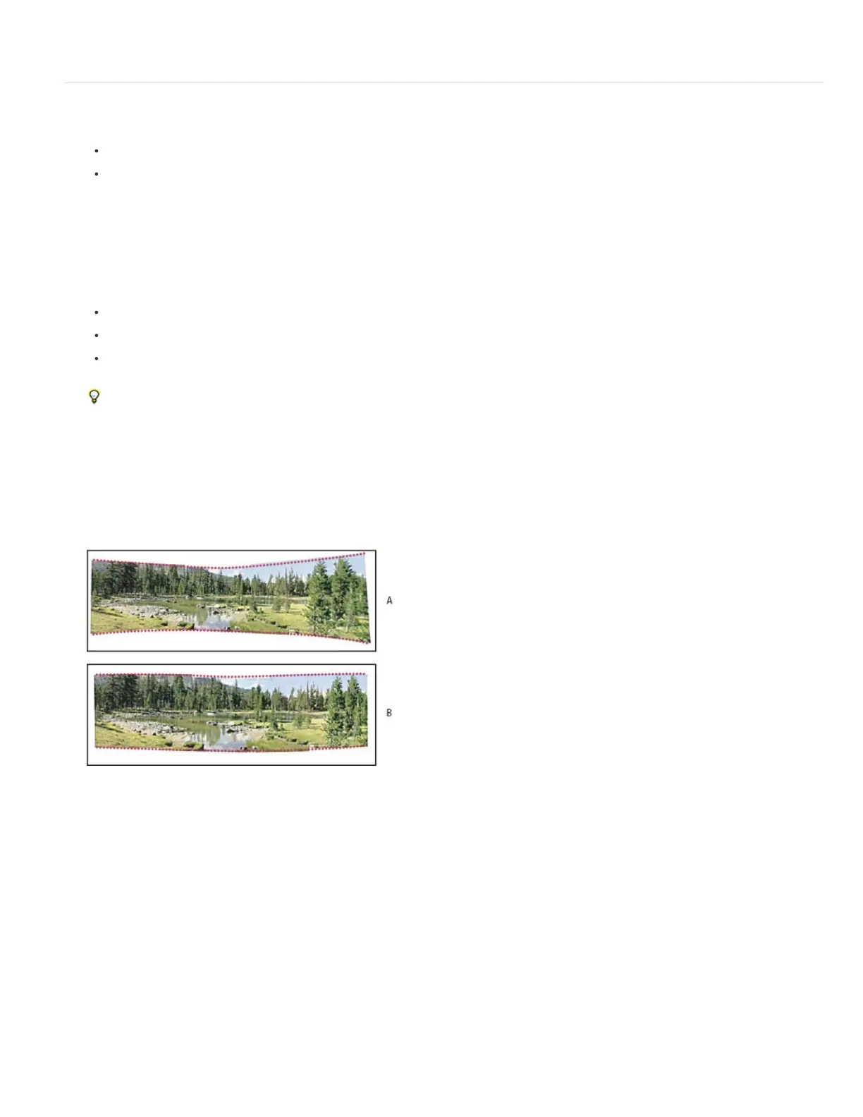 Perspective Creates a consistent composition by designating one of the source images (by default, the middle image) as the reference