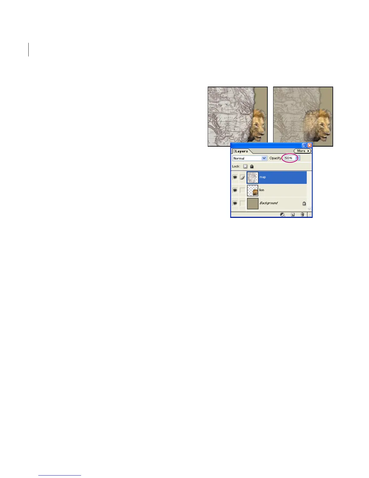 2 In the Layers palette, enter a value between 0
