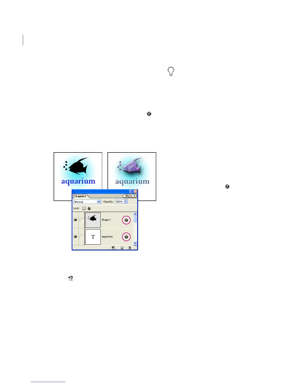 Layers palette. Layer styles are linked to the layer
