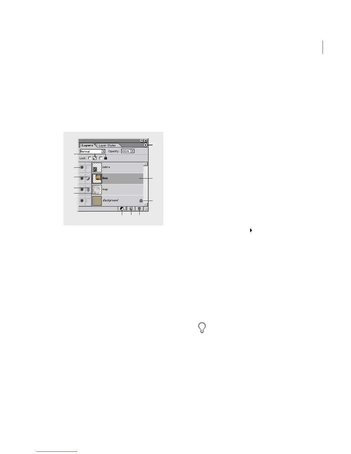 E. Thumbnail F. Palette menu G. Highlighted layer