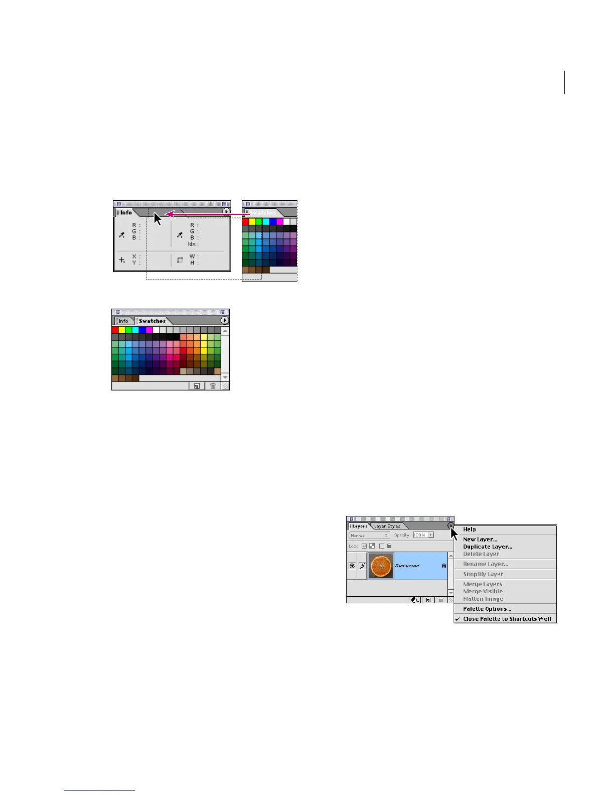2 Drag a palette’s tab onto the body of the target