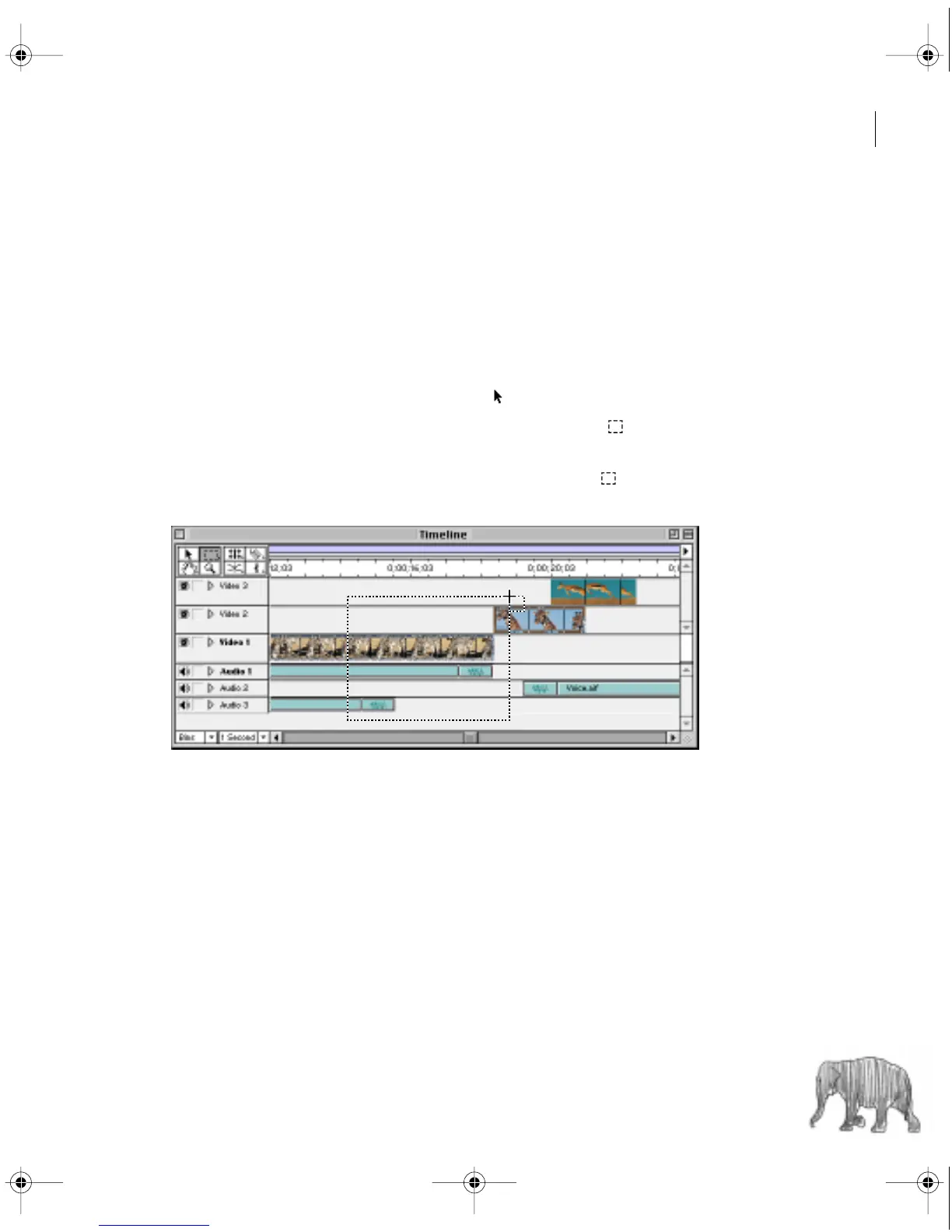 • To select multiple clips by dragging, select the range select tool ( ) and drag a rectangle