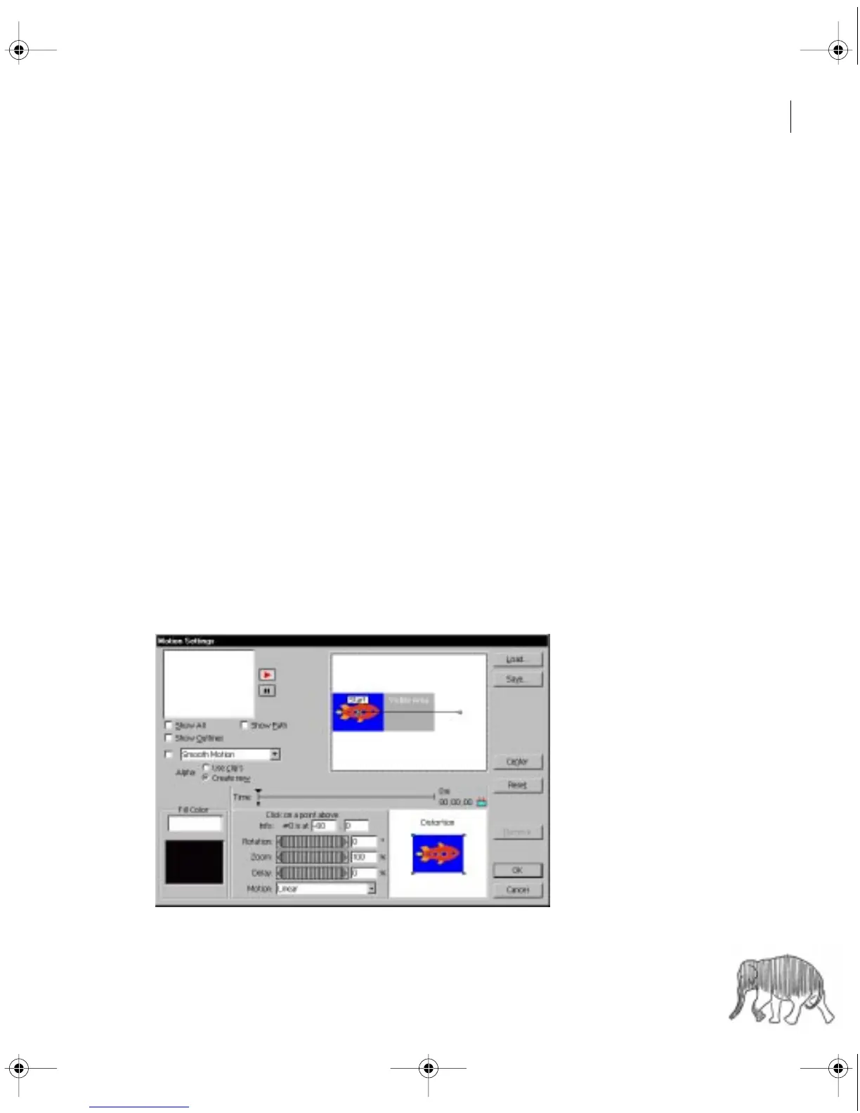 rotation, zooming, delays, and distortion to create more complex motion. See “Rotating,