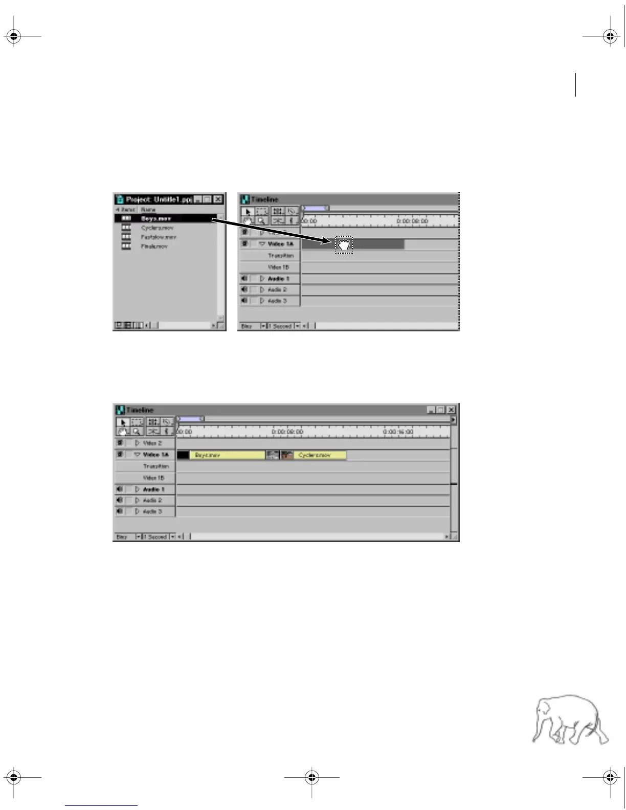 Cyclers.mov clip. Do the same with Finale.mov clip, dragging it just after the Fastslow.mov clip.