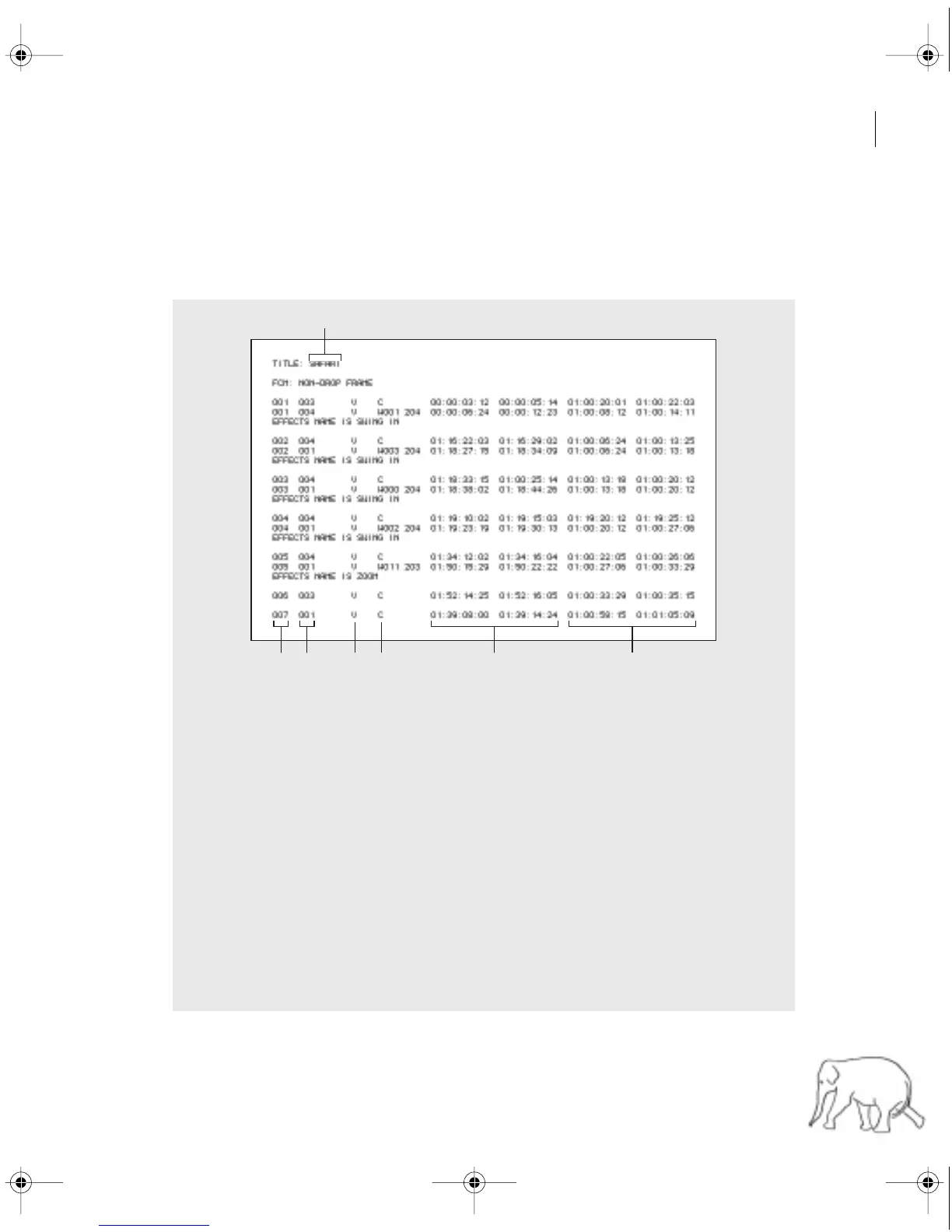 events may use more than one line of the EDL. Unnumbered lines accompanying events are called