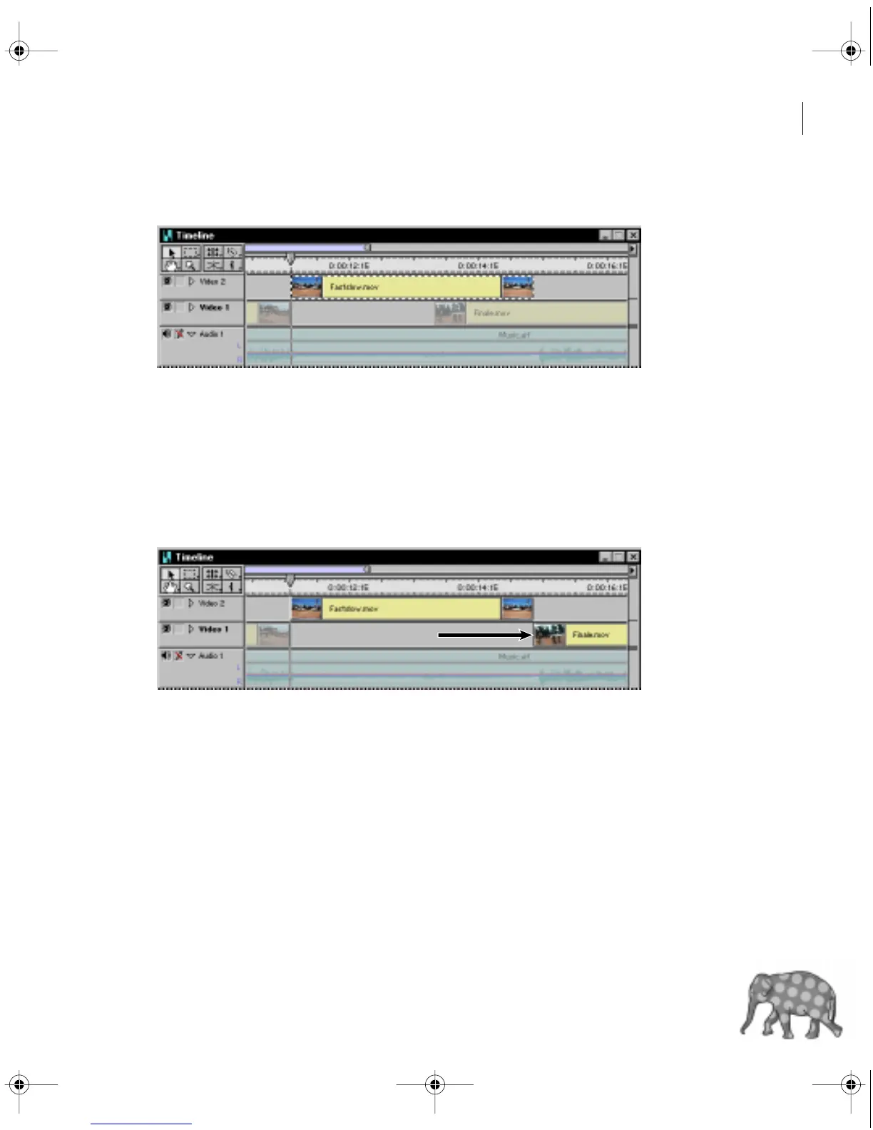 slowed-down clip to fade to black, you need to move the Finale.mov clip to the right.