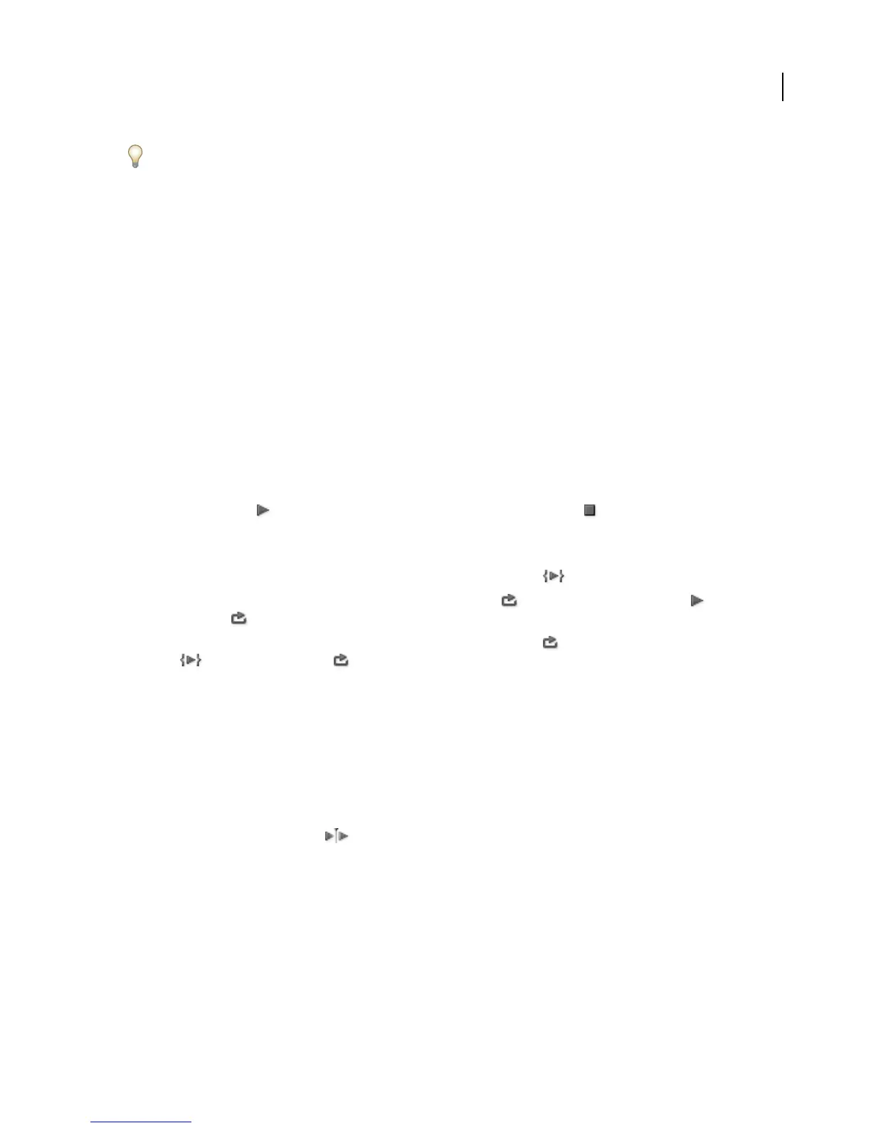 • To play from the In point to the Out point repeatedly, click the Loop button , and then click the Play In To Out