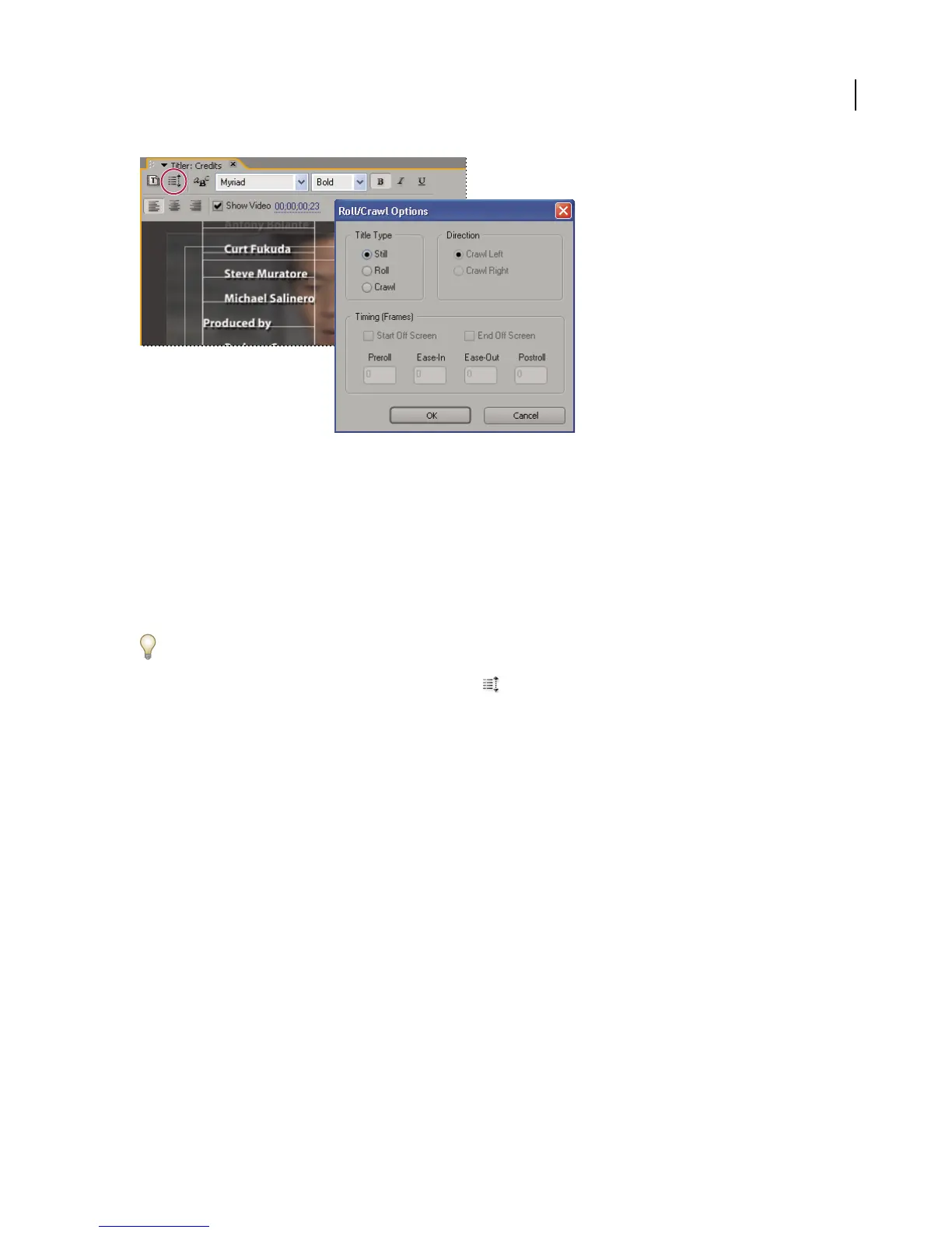 3 In the Titler panel, click the Roll/Crawl Options button .