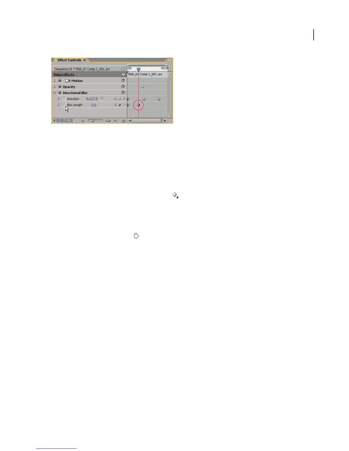 Keyframing is now activated for an effect’s property.