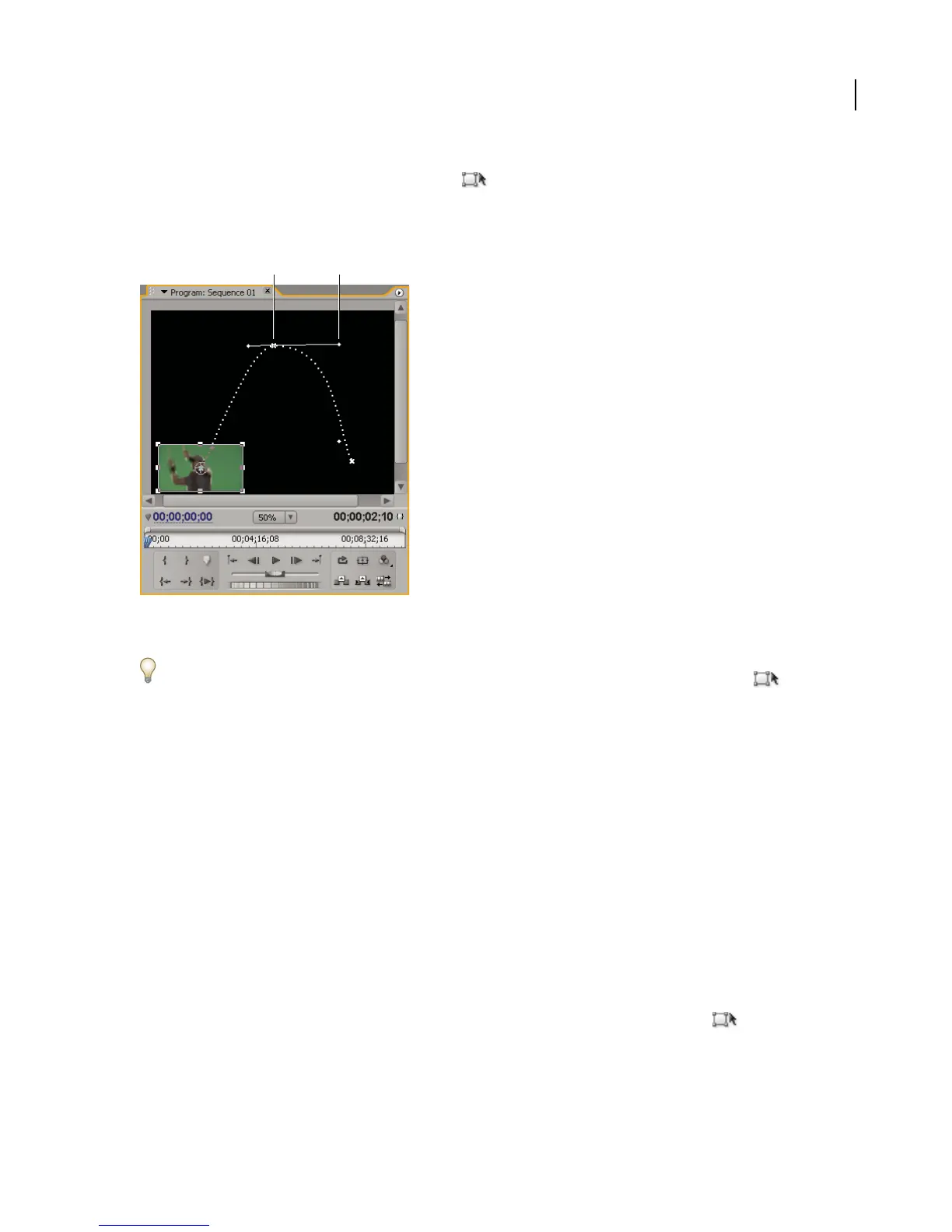 handles appear on the clip in the Program Monitor that let you directly manipulate the clip and adjust the Motion