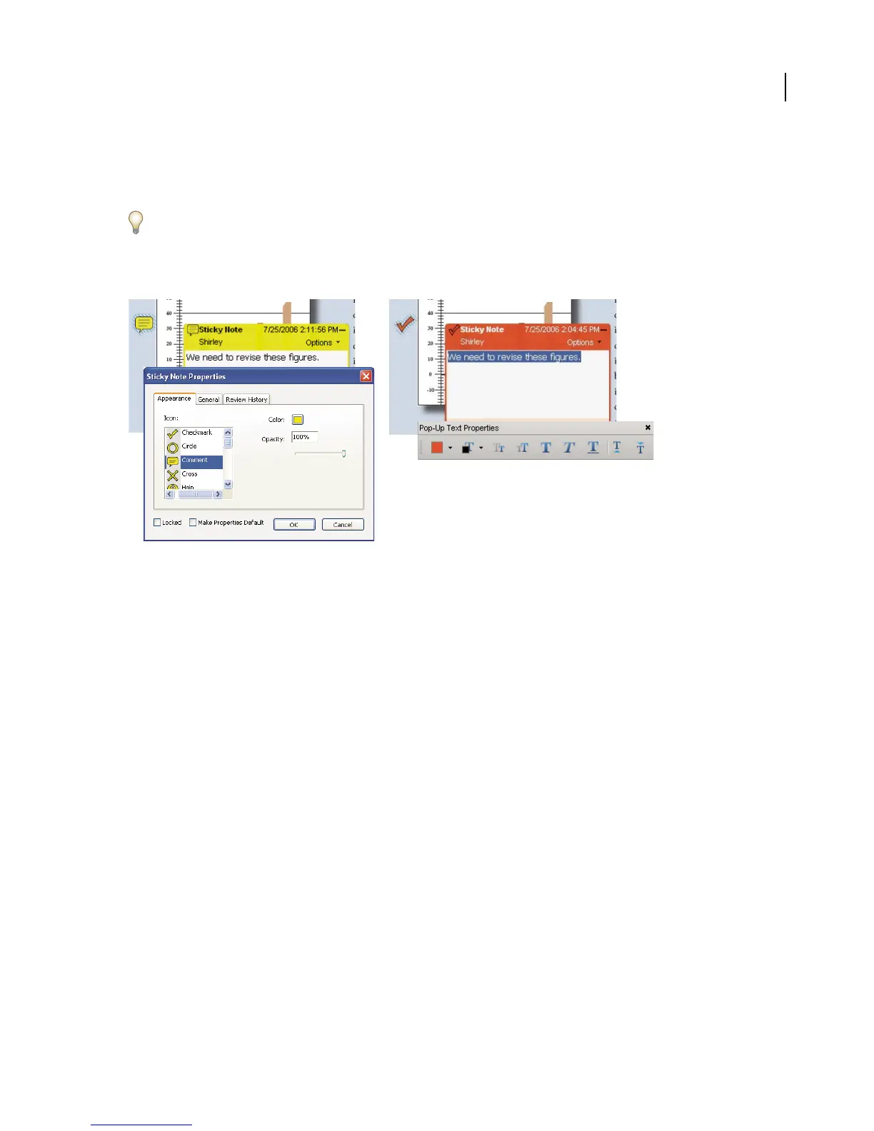 • Select Locked at the bottom of the Properties dialog box to prevent the comment from being edited or deleted.