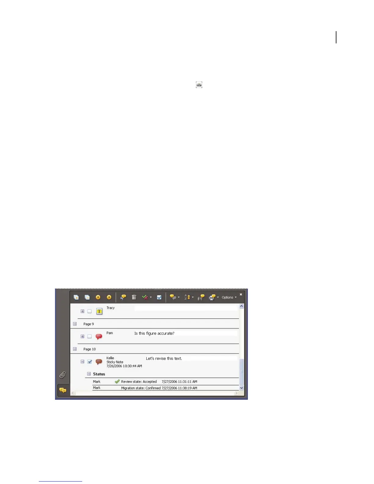 The Comments List displays all the comments in a PDF, and it provides a toolbar with common options, such as