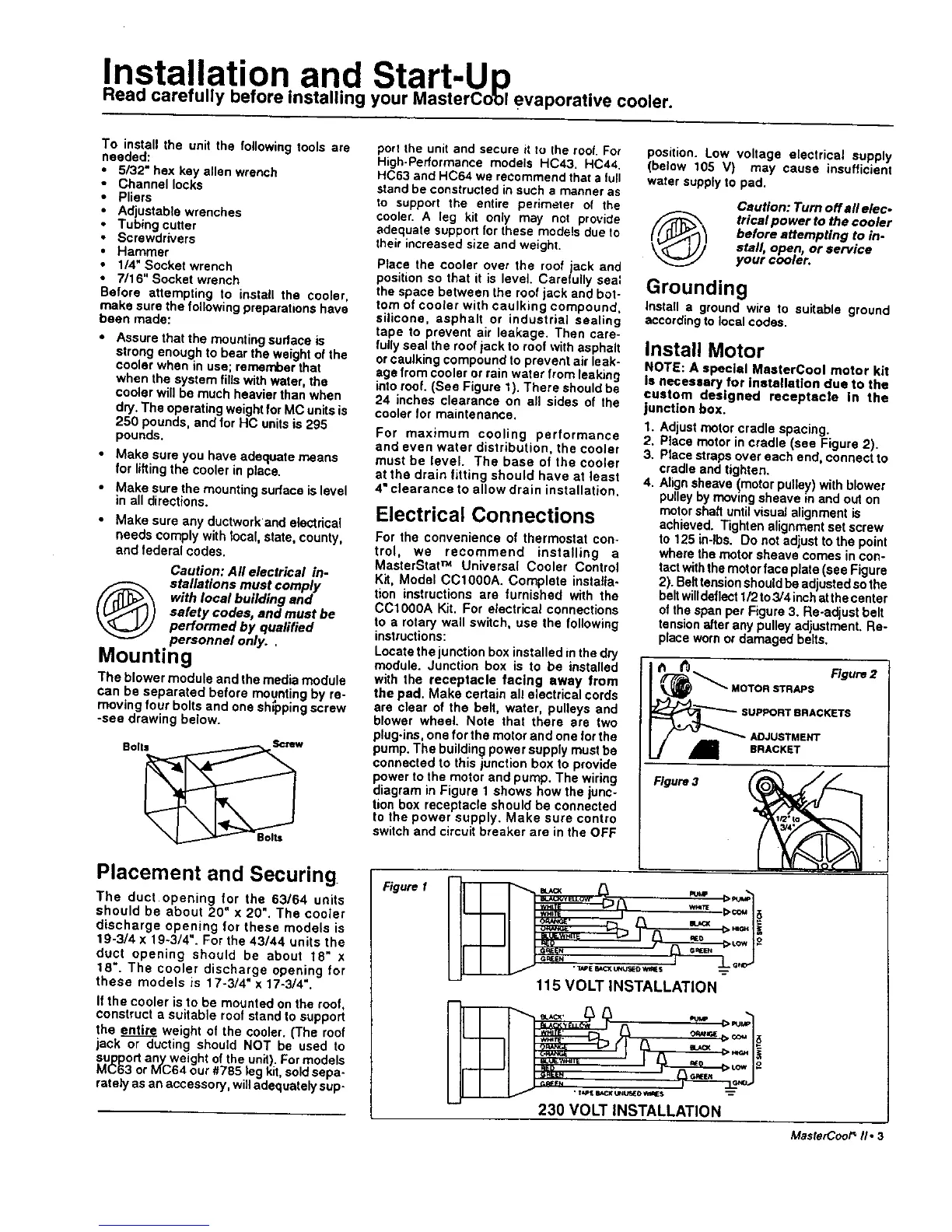 Read carefully before =nstalhng your MasterCo'bl evaporative cooler.