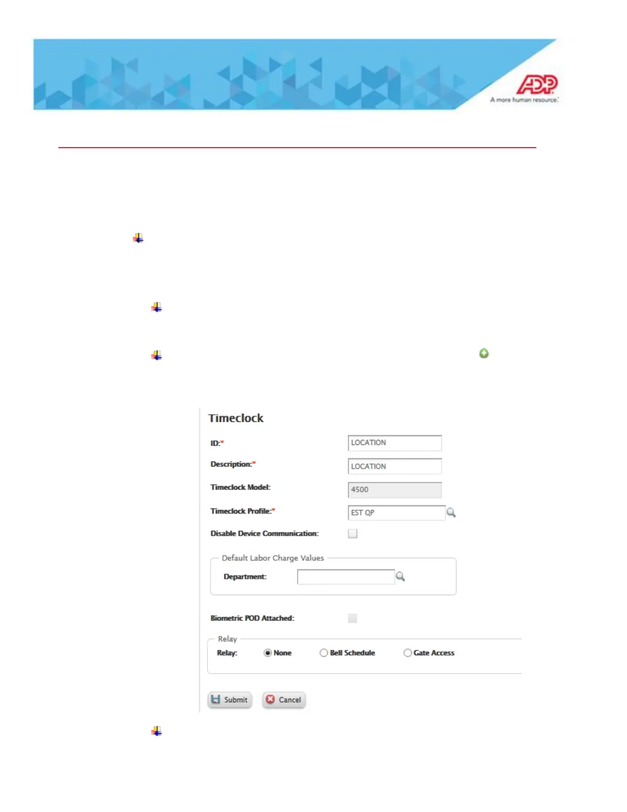 Timeclock 4500 – ID and description location name – all caps no spaces or other