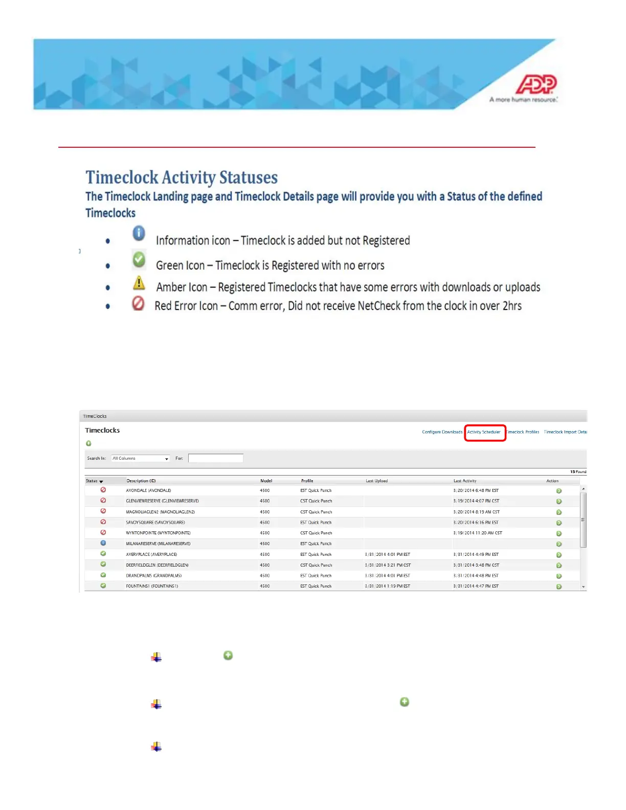 Activity Scheduler upper right corner