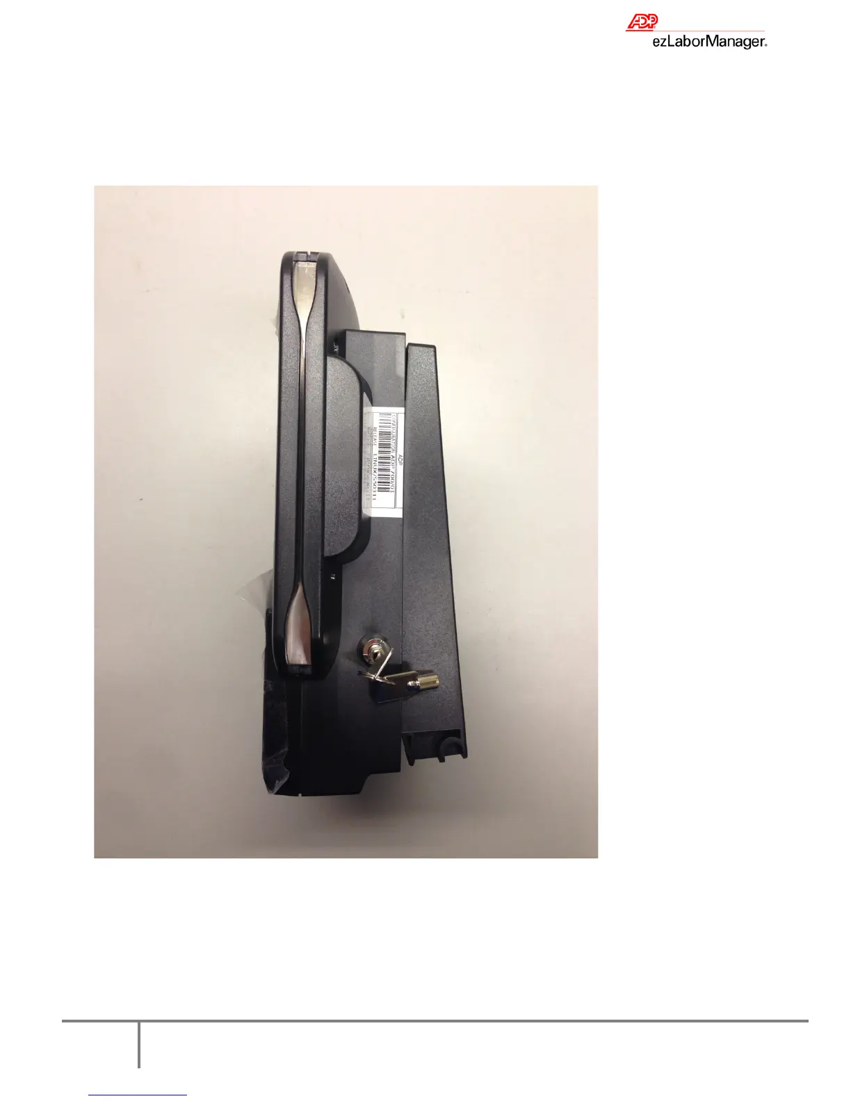 4. Unlock the terminal with one of the provided keys and then gently pull the top of the timeclock towards you