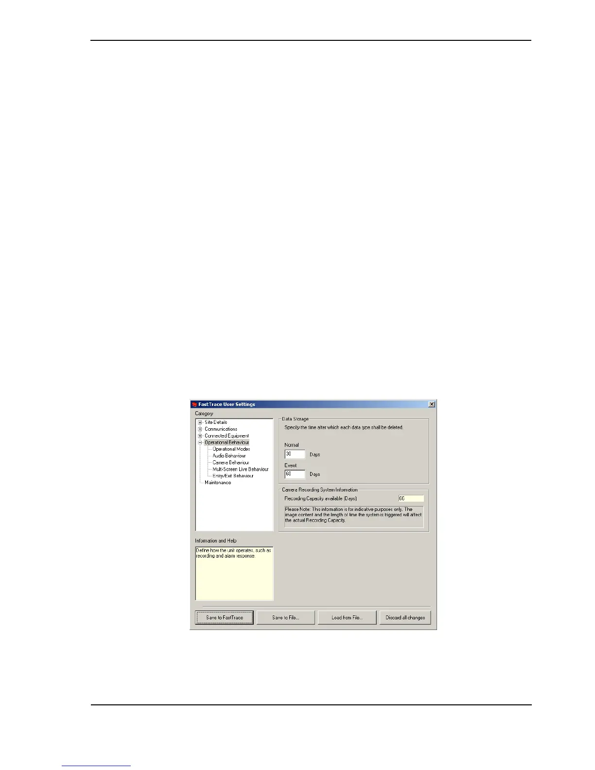 The Operational Behaviour section and settings defines how the system operates overall and