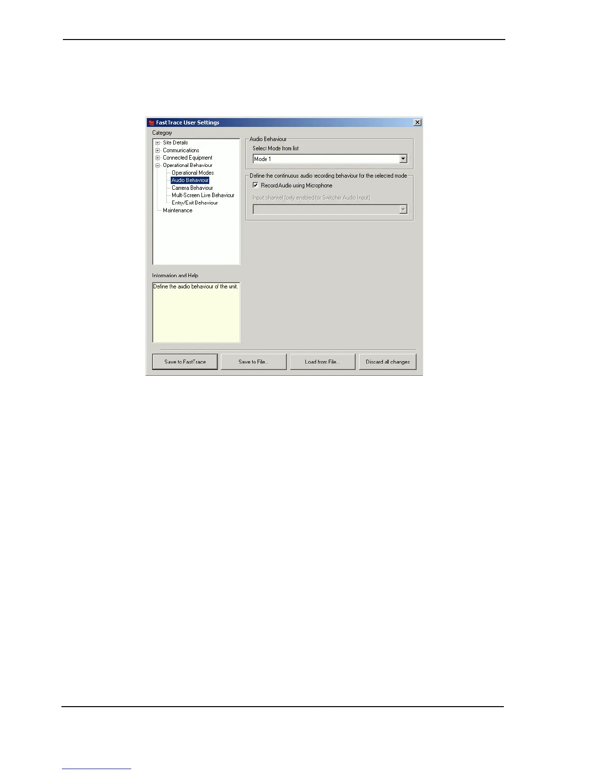The Audio Behaviour page determines whether audio information will be recorded to the hard