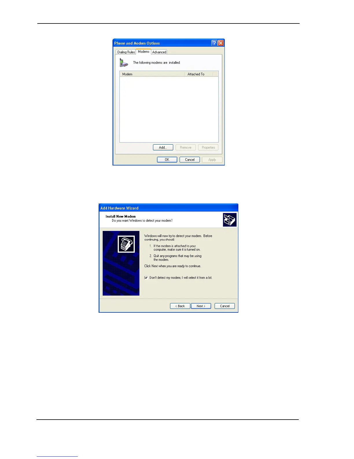 5. When the Install New Modem dialog box is displayed, click the Don't detect my modem, I