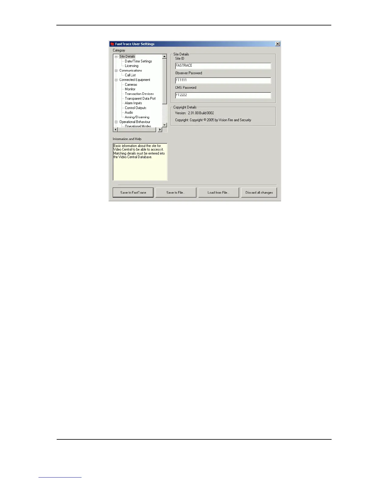 Refer to Programming FastTrace on page 51 for details of the settings which must be defined to