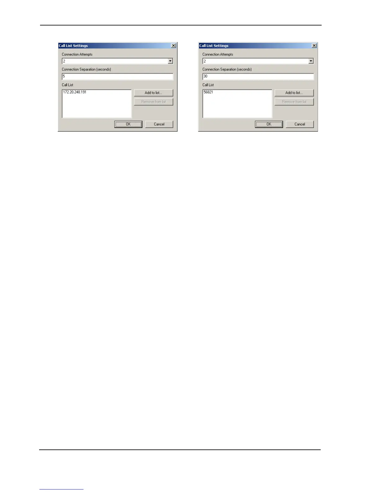 Figure 69: Call List (Ethernet-left, Serial-right) Properties