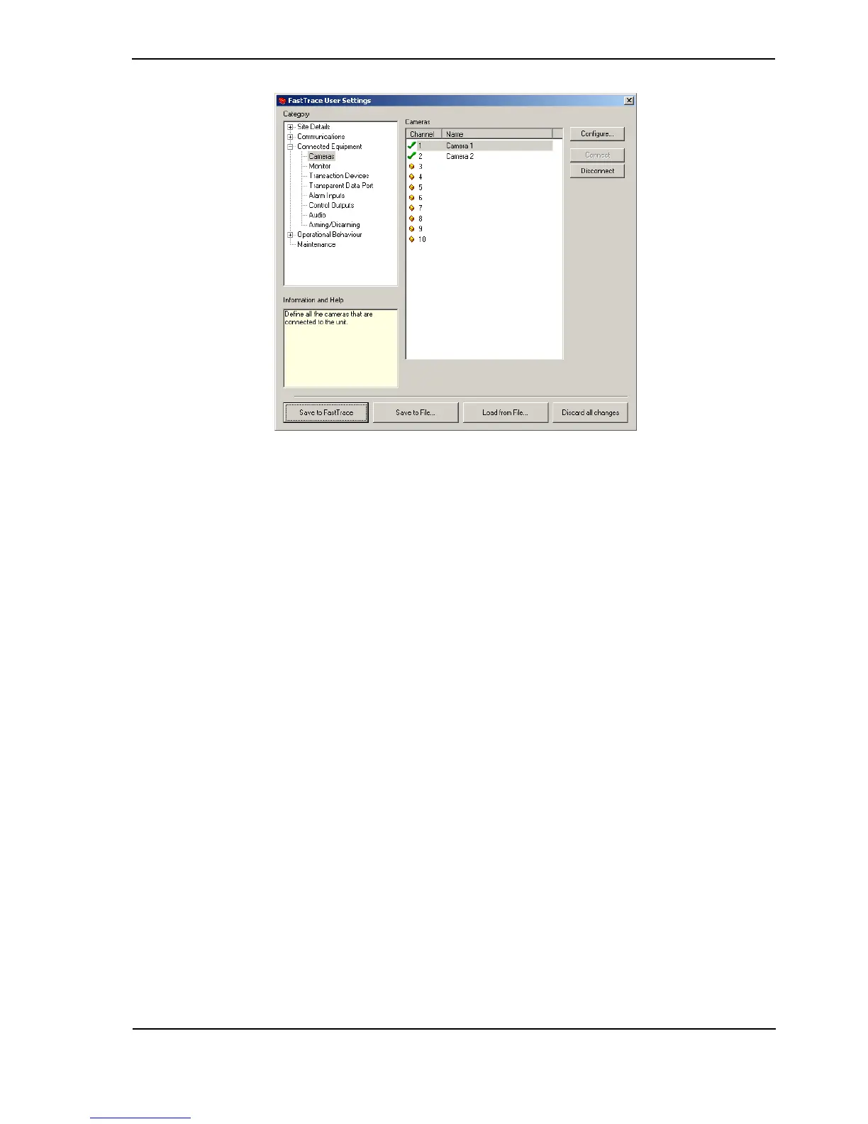 Once a channel has been selected, the Configure button is used to access the Camera