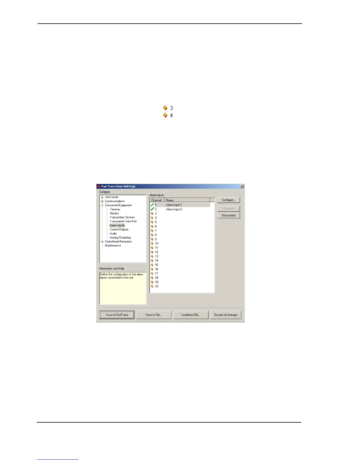 alarm inputs connected to the FastTrace. The number of alarm inputs available will depend on