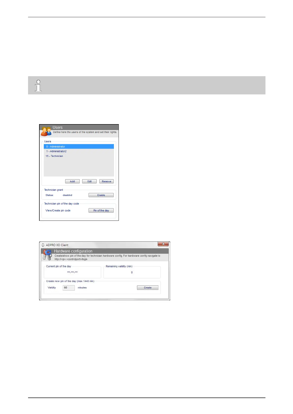 2. Generateaspecial,temporaryaccesscode(PINoftheday)fortheTechnicianuser.ThePINlimitsthetime