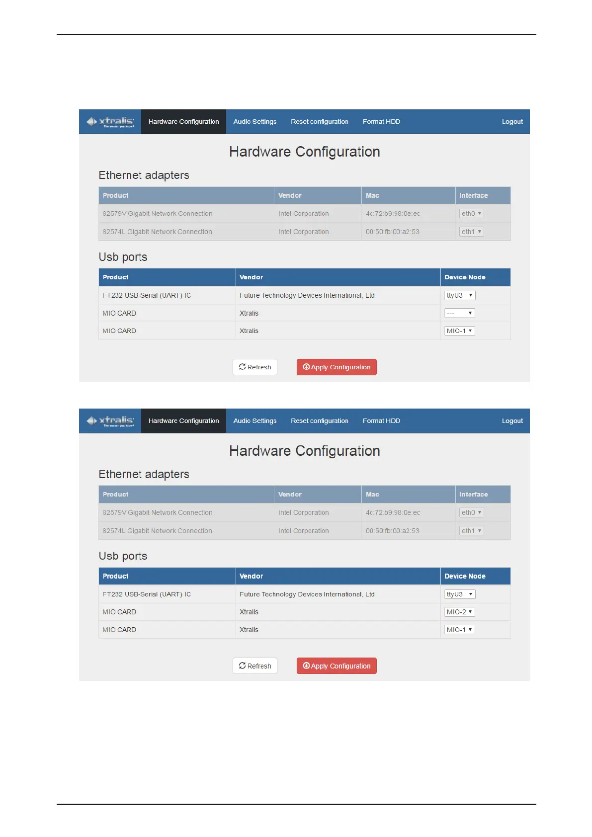 3. Inthehardwareconfigurationtool,clickRefresh.Themodulewillnowappearinthelist,withtheDevice