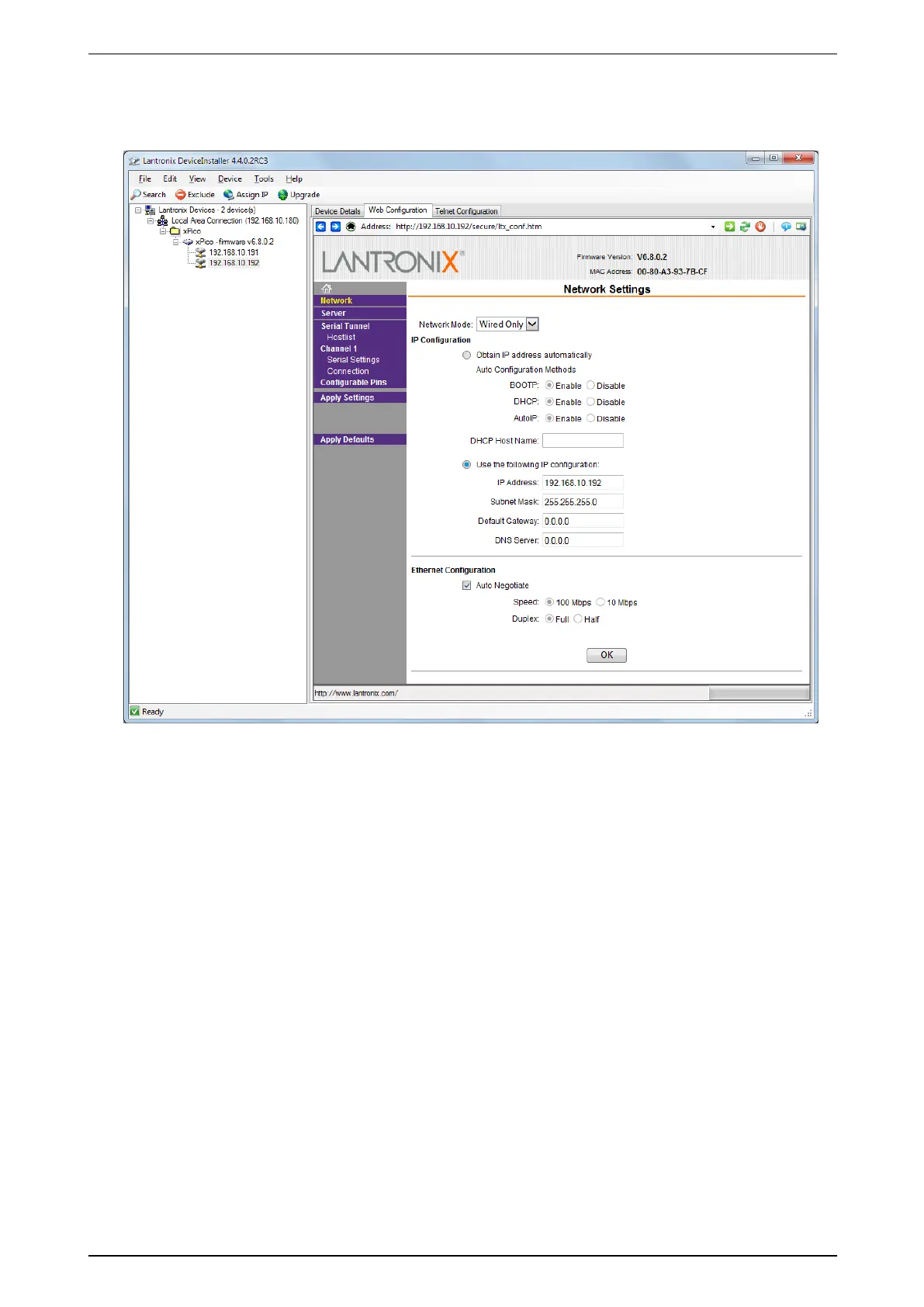 7. ClickNetwork,andprovidethecorrectnetworksettings.Theexamplescreenaboveshowsthesettingsfor