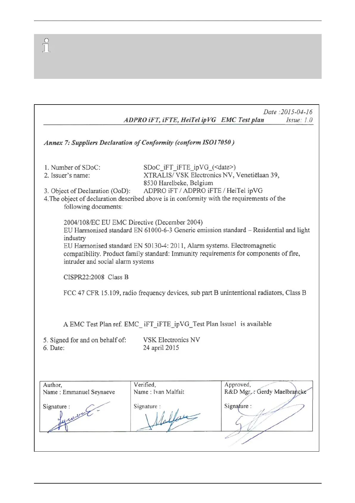 21.2 Declaration of Conformity