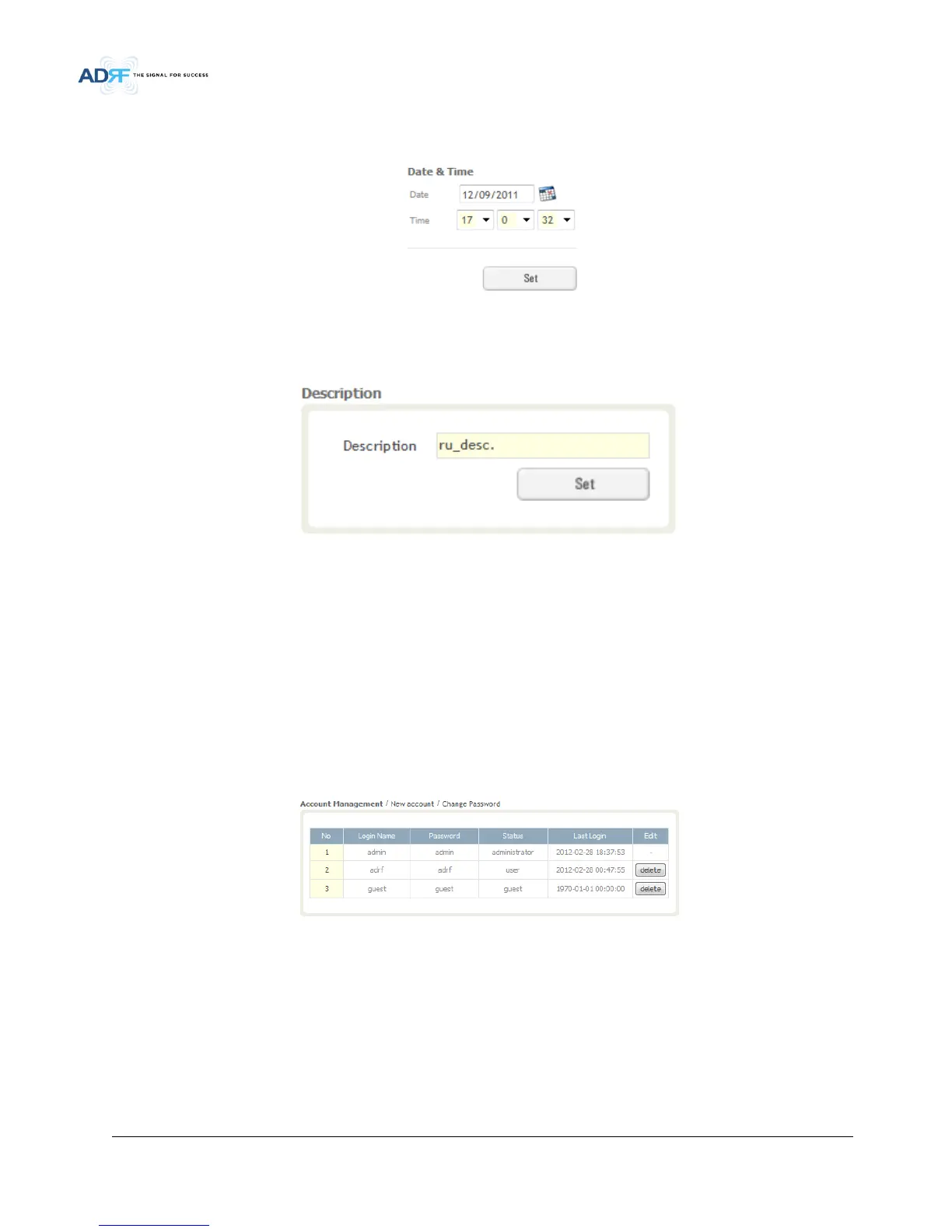 The Account Management section allows the Administrator to delete any user/guest account. Please note that