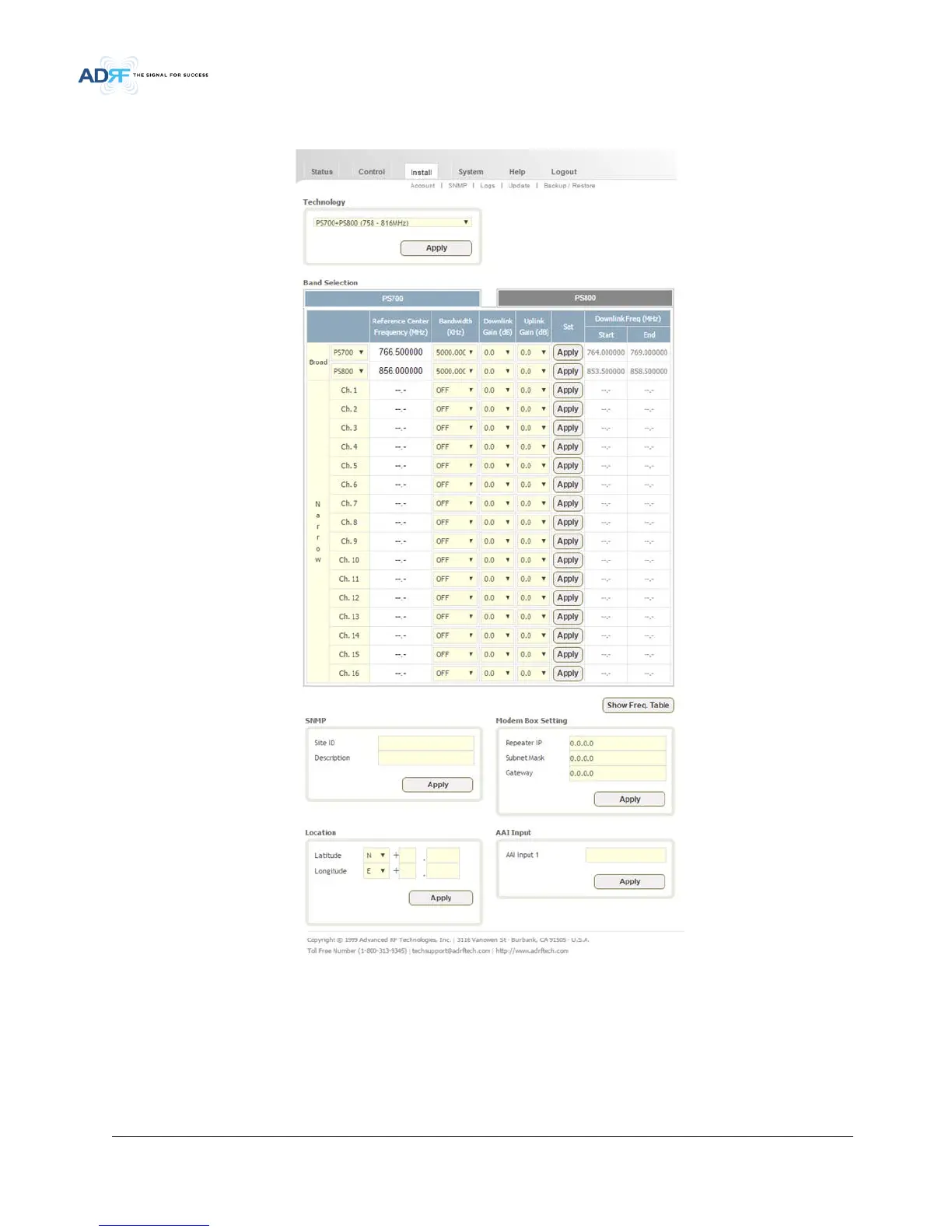 ADRF FiRe-78-4 - Install Tab Overview; Install Configuration